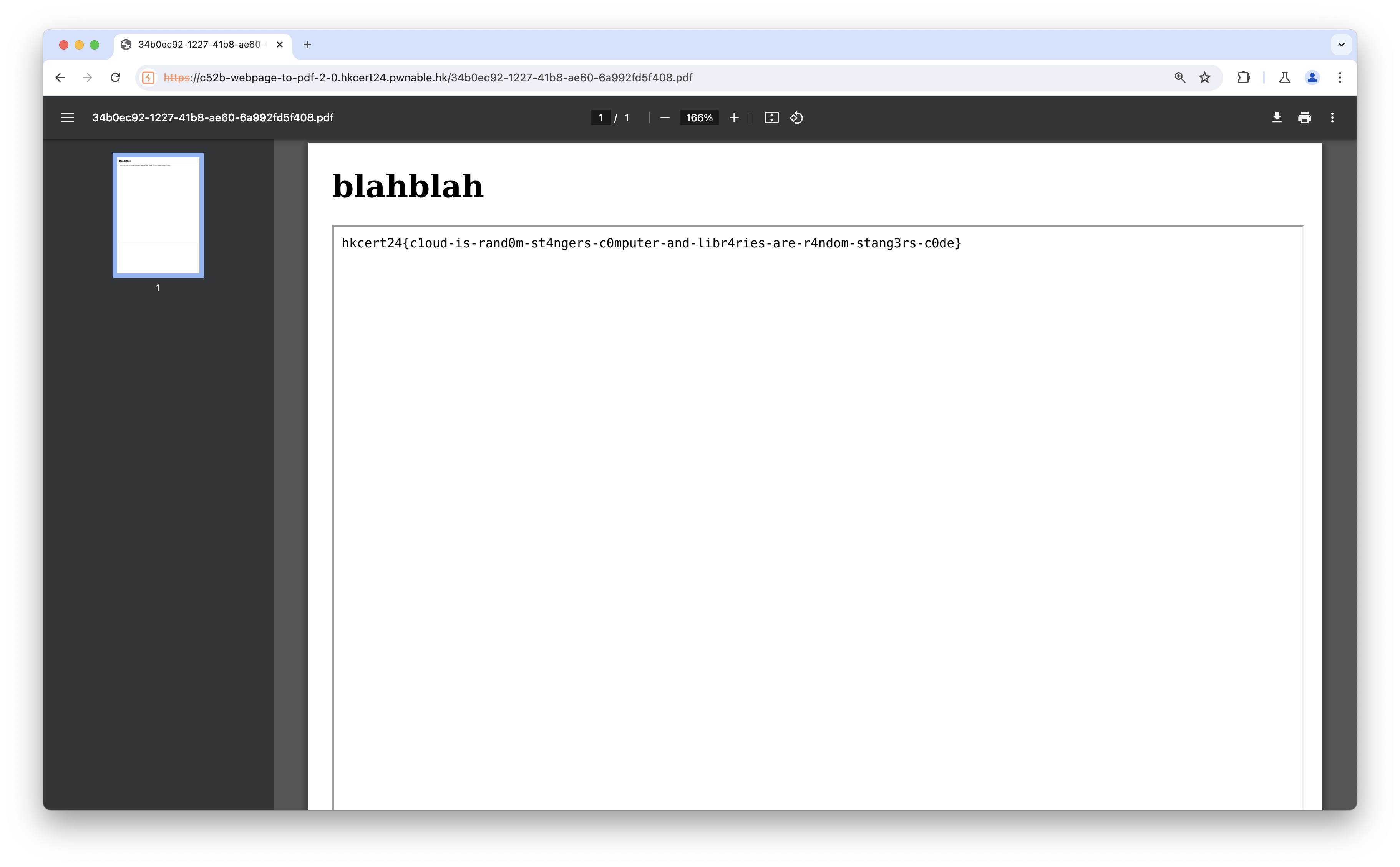 wkhtmltopdf --enable-local-file-access b370c533-8a49-47d6-83c6-35d720fe285c.html --enable-local-file-access b370c533-8a49-47d6-83c6-35d720fe285c.pdf因为要读取 b370c533-8a49-47d6-83c6-35d720fe285c.html ,所以我们先不修改 session_id ,把 Payload 传入靶机,再通过修改 session_id 为 --enable-local-file-access b370c533-8a49-47d6-83c6-35d720fe285c 来读取 flag
